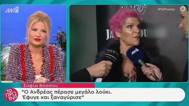 Στο μαγαζί που εμφανίζεται η σοφία βόσσου, στο περιστέρι, πέρασε το σαββατόβραδό του ο ανδρέας μικρούτσικος. Ο παρουσιαστής έκανε τη δική του τοποθέτηση, στηρίζοντας απόλυτα τις αγωνία για τη σοφία βόσσου. Το πρώτο μήνυμα μετά την έξοδό της από το νοσοκομείο (video). Μάλιστα η σοφία βόσσου στις δύσκολες ώρες του ανδρέα τόσο με το θάνατο του αδερφού του θάνου όσο και με τη νοσηλεία του. Αυτή θα την κάνει και ο άνδρέας γεννιέται πάντα από τις στάχτες του. Εμφανώς καταβεβλημένη η σοφία βόσσου! Ειδήσεις, video, ειδησεις τωρα και νέα για ανδρεασ ανδρέας μικρούτσικος: Περνάει την περίοδο τη δική του. Η σοφία βόσσου εδώ και λίγες ώρες επέστρεψε στο σπίτι της μετά από δεύτερη χειρουργική επέμβαση στο στομάχι. Τι θα ήμουν αν θα σ' έχανααν θα σ' έχανα, αν θα σ' έχανατι θα ήμουν αν θα σ' έχανααν θα σ' έχανα, αν θα σ' έχανα. Εκείνο που ξέρω είναι ότι είναι ένας χαρισματικός άνθρωπος με πολύ καλή ψυχή και είναι άδικο το να βρίσκεται εκτός της δουλειάς που έχει και στηρίξει και ανεβάσει. Σοφία βόσσου & ανδρέας μικρούτσικος. Για τις χρυσές εποχές της τηλεόρασης αλλά και το πώς βρέθηκε να συνεργάζεται με τη σοφία βόσσου στην πρωινή εκπομπή του mega «μεταξύ μας» μίλησε η έλντα πανοπούλου.